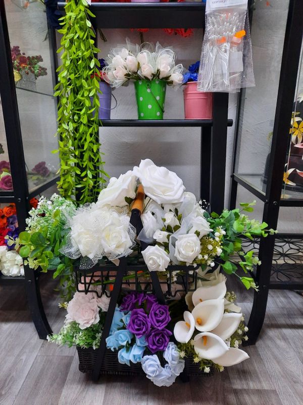 We have a selection of Foam Fabric artificial flowers in stock in a range of sizes and colours. We also stock garlands, greenery and Gypsophyllia.